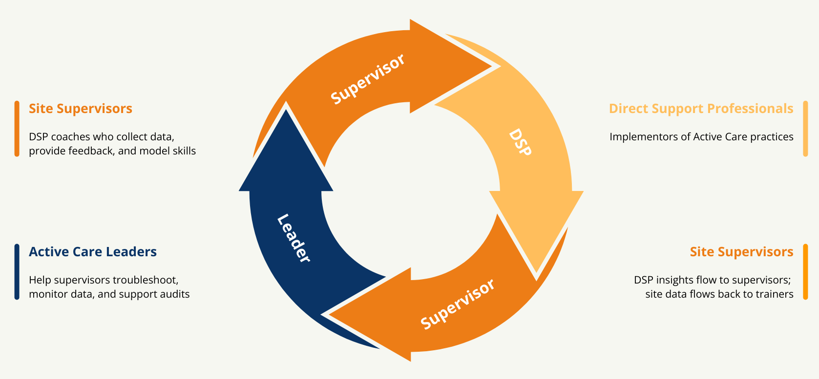 Leaders master the "Train-the-Trainer" curriculum, focusing on Behavioral Skills Training. They learn to deliver impactful online and live instruction, ensuring Supervisors and DSPs achieve high-fidelity performance.